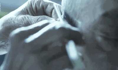 然后仔细地拿着剃刀在顾客的脸上轻轻修