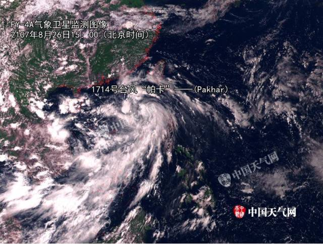 图为“帕卡”26日15时的高清云图,图上可见,“帕卡”的外围云系已经扫到广东沿海地区上空。