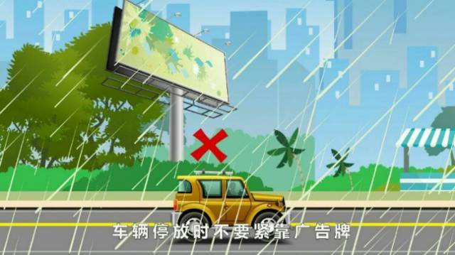1.暴雨期间不要驾车外出,车辆停放时不要紧靠广告牌、临时建筑或大树。