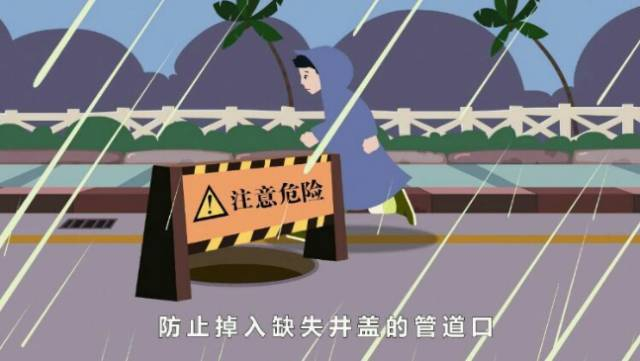 5、小心积水、谨防触电。积水之下暗伏危险,要尽量绕开。发现电线杆吹倒、电线被风吹断,一定要迅速远避,谨防触电。