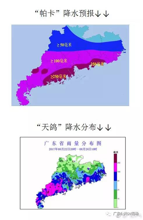 2.“帕卡”登陆后强降水区域与“天鸽”重合,粤西地区河流刚经历了一场洪水,前期土壤含水量已经趋于饱和,珠三角及粤西地区群众需注意防御局地强降水引发的中小河流洪水、突发山洪、城乡积涝等灾害