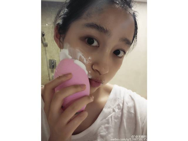 “国民闺女”关晓彤在微博晒出素颜洗脸照,用的也是Foreo。
