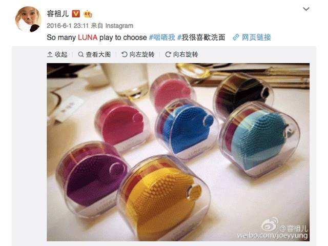 她用的是素有“洁面仪试用装”之称的LUNA play,也是Foreo洁面仪中最受欢迎的一款。
