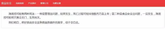 海底捞官网的食品安全页面,有这样段句话: