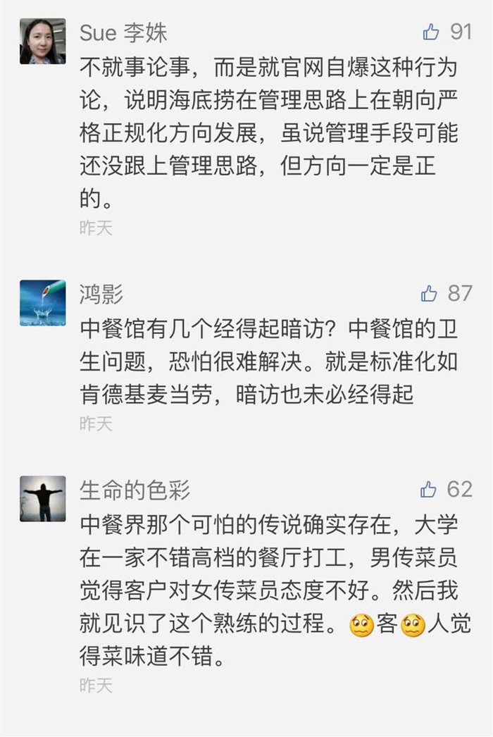 不过,不少网友对于海底捞这种勇于发现自身问题的行为,表示很赞同。