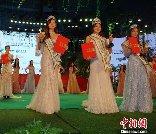 地球小姐冠亚季军合影魏佳文摄