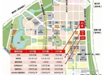 如上图所示,郑州市国土局挂出经开区3宗滨湖国际新城土地,分别是31、32、23号地。值得关注的是,31/32号地块综合房价最高限价17000元/㎡,23号地块综合房价最高限价18000元/㎡。