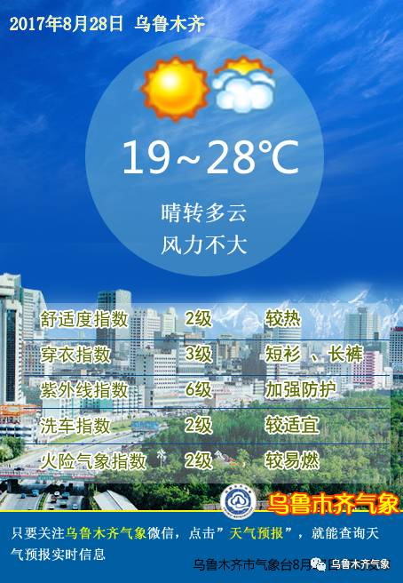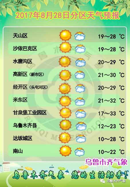 今天白天气温稍有上升,至下午16时最高气温:主城区为27至29度,米东区为30.3度,达坂城区为28.4度,南山和南郊为20至24度。