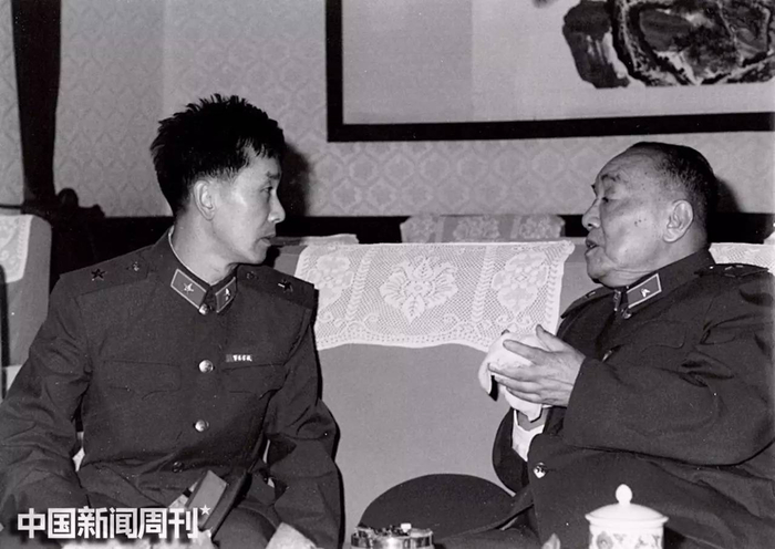 1986年5月27日,杨尚昆与徐建林在河北石家庄27军军部。这是他们时隔25年后的第一次重逢。图 | 受访者提供