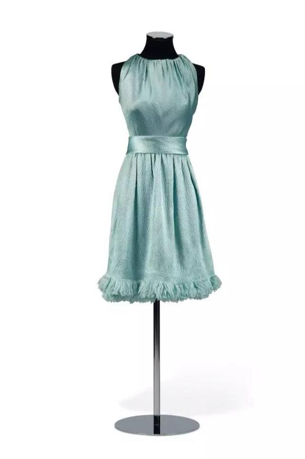 提起奥黛丽・赫本,人们往往会联想到著名女装设计师于贝尔・德・纪梵希(Hubert de Givenchy)。她推荐纪梵希为自己的第二部好莱坞电影《龙凤配》(Sabrina)设计戏服后,两人成为好友并经常合作。纪梵希曾为她的多部电影设计服装,无论在幕前幕后,赫本时常都选择穿著纪梵希的设计。1966年,她为电影《俪人行》(Two for the Road)接受时装杂志专访时,由威廉・克莱因(William Klein)为她拍摄造型照,当时她穿著的纪梵希蓝色缎料礼服同样也将于本次拍卖中亮相。这袭高贵典雅的礼服缀以蓝色缎料流苏,简而不凡,彰显纪梵希为赫本打造的独特个人风格。