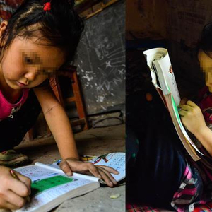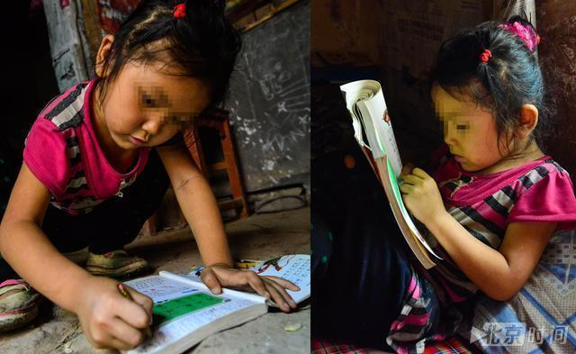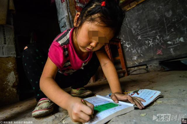 留守女娃为省钱拒买书桌 趴地上写作业