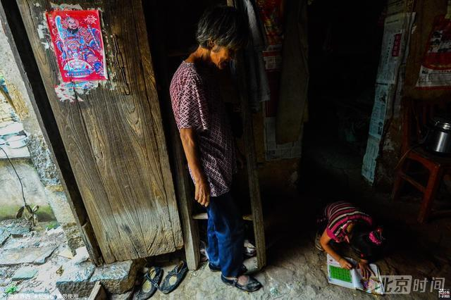小孙女秦飞燕今年已经7岁了,已经会写简单的数字了,可家中连一个写字的书桌都没有,小飞燕也不挑剔,有时就直接蹲在地上写字。