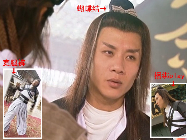 论时尚,怎么能忘了那位对阿飞心仪已久,头戴蝴蝶结、身着宽腿裤、动辄捆绑play的荆无命(陈凯饰)!↓↓↓