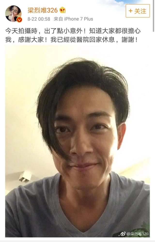 而后,“TVB男星拍戏时被汽车撞飞”登上微博热搜,网友们纷纷表示担心,梁烈唯也在微博进行了回应。