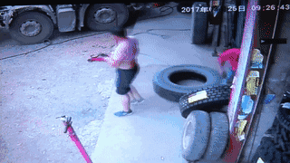 据了解,当时轮胎店老板谢立军已经为货车更换了第一个轮胎,就在准备换第二个轮胎时,意外发生了。