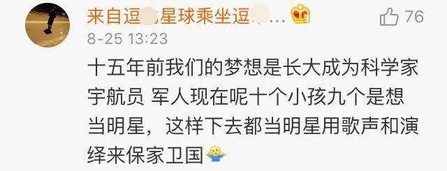 也有网友认为,社会在进步,能带来正能量的都可以被敬仰,不需要对“明星”这个职业有所偏见。明星也有励志的一面。