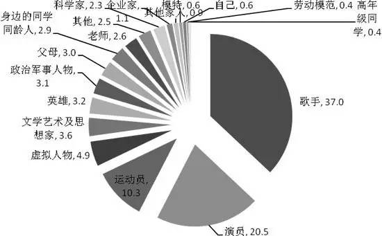 文体、娱乐界的明星如今更能成为年轻人的偶像,英雄、劳模、科学家的影响力或许远不及明星。中国青少年研究中心曾公布一项课题名为“少年儿童偶像崇拜与榜样教育研究”的调查报告,结果显示:近七成的孩子最崇拜的偶像是文艺体育明星,而文学家/艺术家/思想家、英雄、政治人物、军事人物均为3%左右,科学家只有2.3%,劳动模范更少,不足1个百分点。