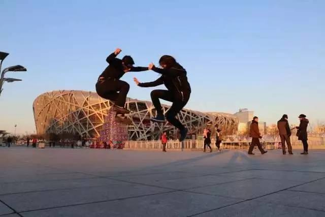 2016年寒假,达妮埃拉(右)与朋友在北京奥林匹克公园游玩。(达妮埃拉提供)