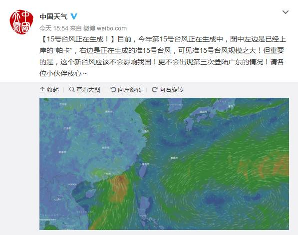 根据中国天气网官方微博消息,目前,今年第15号台风正在生成中。