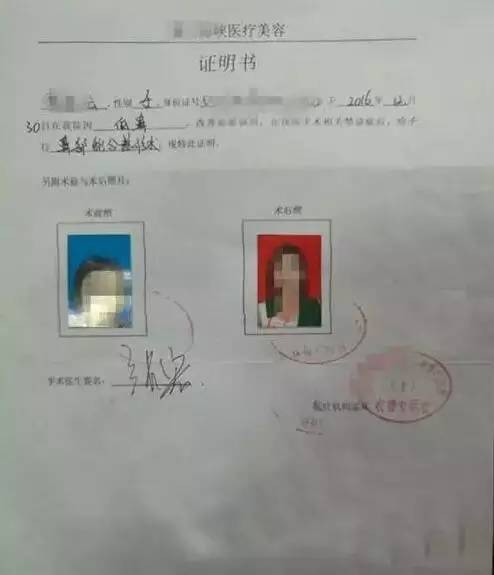 李雪(化名)实施手术的医生出具的医院整容手术证明
