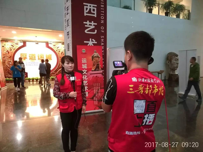 在运城文化艺术周开幕式现场,场内艺术盛宴精彩,场外多家媒体聚焦。数十家媒体纷纷发挥各自媒体的优势,争相报道运城文化艺术周的盛况。在众多媒体中,本报“码上直播”团队成为当天开幕式的一道靓丽的风景,也引起了观众和媒体的关注。