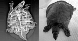 让人惊奇的是,这只甲鱼在体内藏了三只鱼钩的情况下仍然坚强存活。