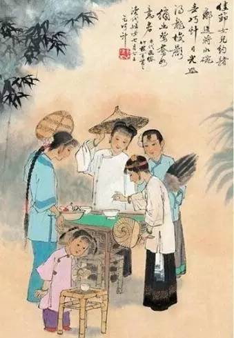 这也是较早的一种乞巧方式,其俗稍晚于穿针乞巧,大致起于南北朝之时。
