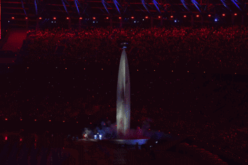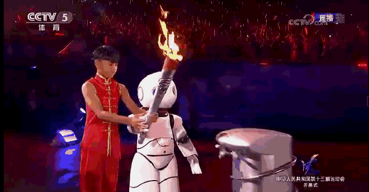 圣火传到了津娃的手中,在津娃和智能机器人优友的合作下,主火炬被点燃,此时现场的气氛被推向高潮。