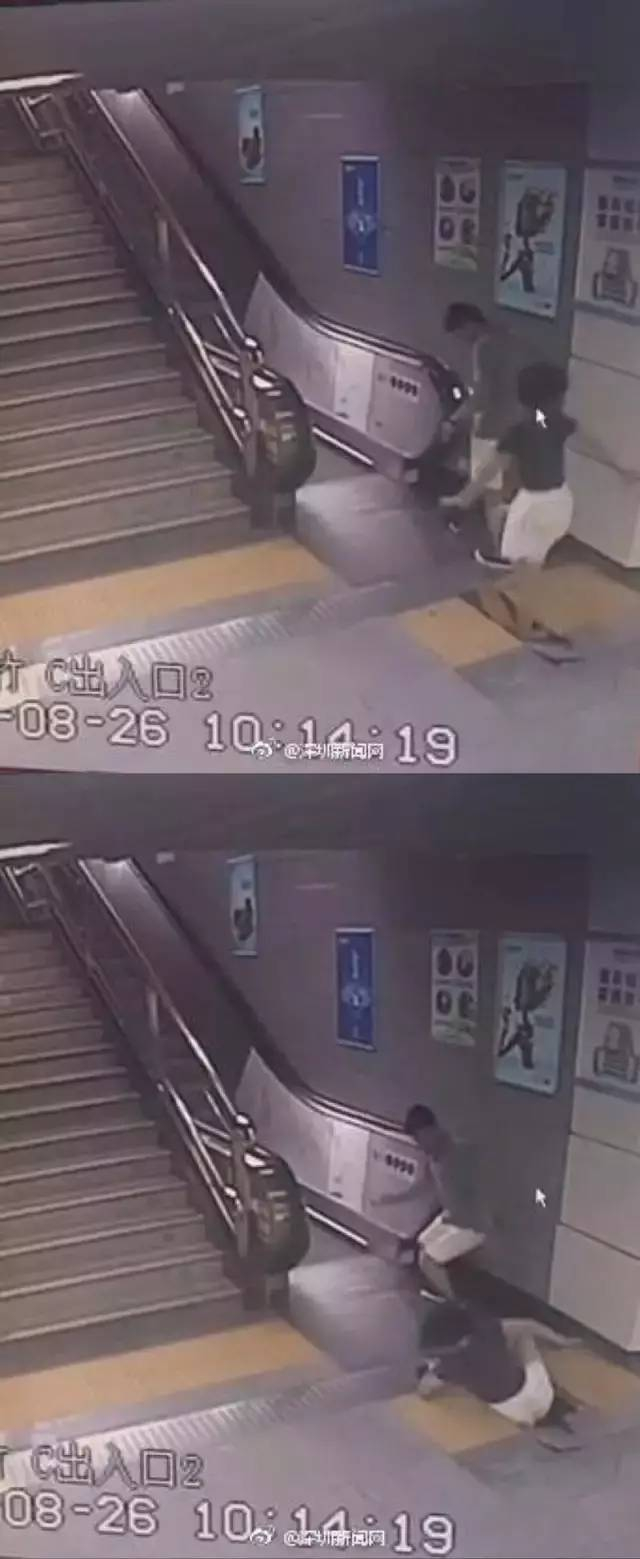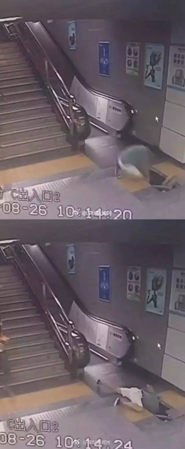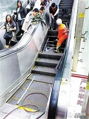 地铁自动扶梯踏板突然塌陷,