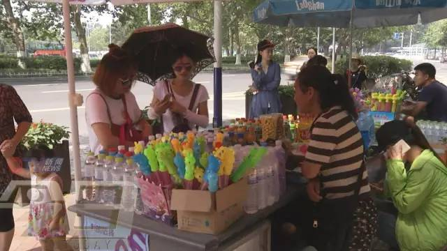 7月8日,天泰体育场户外温度到了31℃,大人都受不了高温的炙烤,但一个小男孩却吃力地推着一个箱子,里面装满了青岛老冰棍。
