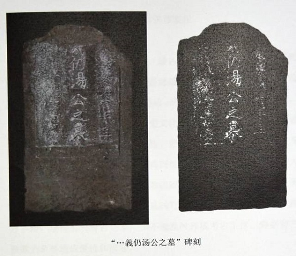 “玉茗公墓”碑刻 “義仍汤公之墓”残缺墓碑