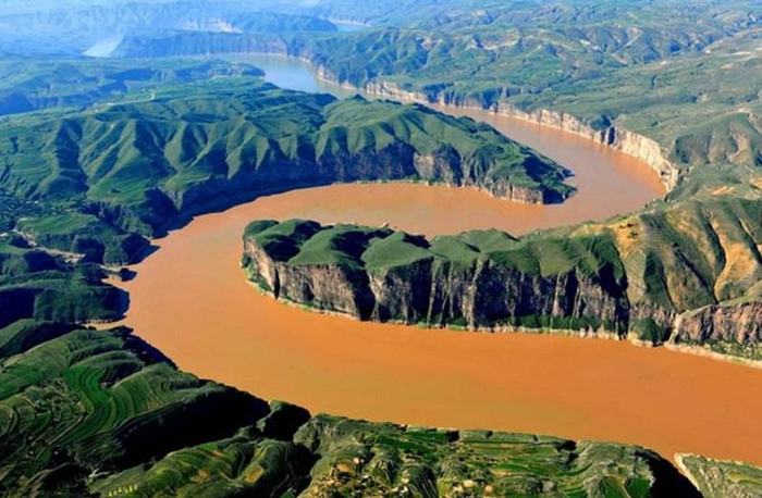 从壶口瀑布继续往北走就进了山,进山140公里左右,就到了乾坤湾。黄河流经延川县秦晋峡谷时,一改怒吼咆哮的形象,蜿蜒曲折形成了五个S型大弯道,堪称地质奇观。