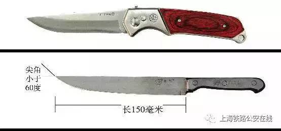 管制刀具:刀具只要尖角度小于60度、长度超过150毫米,都属于管制刀具,陶瓷类刀具只要符合上述规定的同样属于管制刀具。 管制刀具是禁止携带进站上车的。