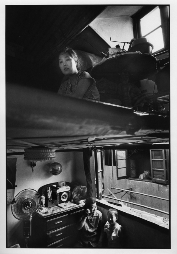 尽管朱钟华、陆元敏、王耀东和王骅都以街头作为他们拍摄的阵地,但他们也各有不同的表现。朱钟华在街头捕捉着这场剧变中小人物的生存状态,在这一系列平常、美好、焦虑甚至不堪的瞬间里我们也可以看到这位摄影师个性中的温情和幽默。而陆元敏的这批作品则将街头化为承载着现代生活所特有的“偶遇”瞬间的剧场,这些互不相识的路人恰好经过这个街头和陆元敏的取景框,他们被安放进了快门的开合之间,显影出一个个漂泊在街头的不安和无依的灵魂。而王耀东和王骅的上海则让我们觉得陌生,这些照片里所表现的是一些在轰轰烈烈的建设和生活之外被人遗忘的角落和有点离奇地出现在这些角落中无名者。他们的作品将陆元敏的那种“我不知你何往,你不知我何去”更推进了一步,并注入了更为寂寞、忧伤、疏离和诡异的都市情绪。周明同样是一位杰出的街头摄影家,但这次他呈现的作品是关于1990年代曾牵动了大多数上海人心绪的“住房困难”的话题。这些照片再现了当时很多上海家庭逼仄的生活空间,同时这其中又不乏生活的智慧以及久违的邻里之间的交往和相处。