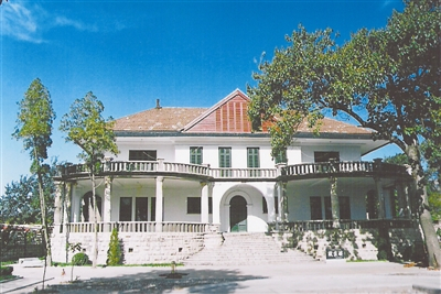 推开西洋风格的铁质大门,环顾四周,旧时豪门家族气息和西洋风韵扑面而来。首先映入眼帘的是建筑独特、简洁明快的龙凤观日亭,俗称凉亭,亭子建在青石筑成的平台之上,由8根石柱巍然托起。