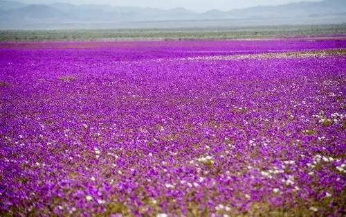 这是8月26日在智利阿塔卡马沙漠地区拍摄的盛开的鲜花。这一地区曾是世界最干旱地区之一,由于近来雨量充沛,出现了数百种沙漠植物竞相发芽开花的景观。