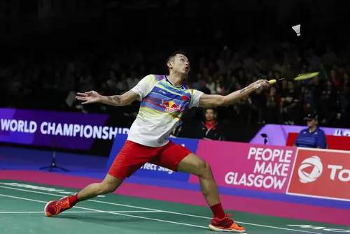 8月26日,林丹在比赛中回球。当日,在英国格拉斯哥进行的2017年世界羽毛球锦标赛男单半决赛中,中国选手林丹以2比0战胜韩国选手孙完虎,晋级决赛。