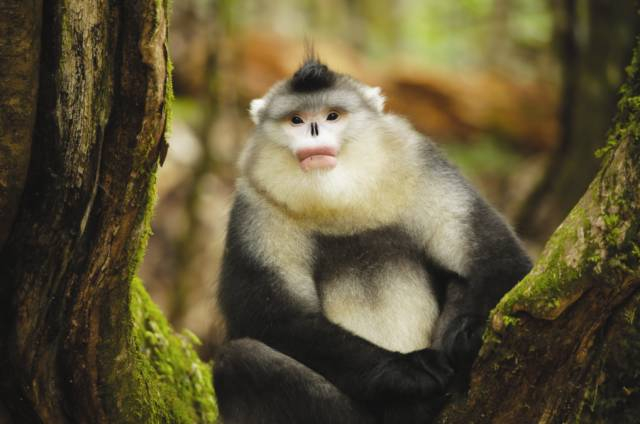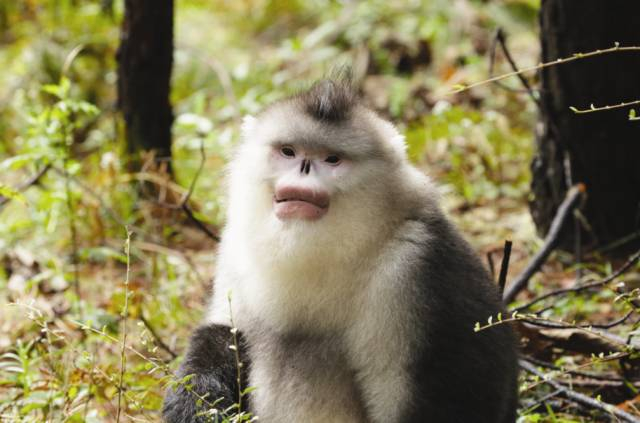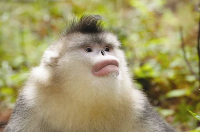 留着时髦的朋克头,长着和人酷似的面孔,红唇艳丽,黑背白腿,滇金丝猴就是这么特别!