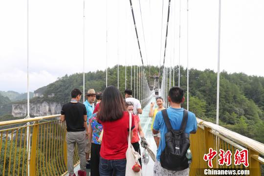 游客体验贵州首座玻璃天桥 贺俊怡 摄