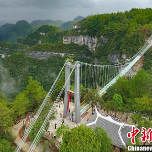 在现场,记者看到云台山云雾缭绕、锥状峰丛,坪山垴沟谷中新建的玻璃悬索桥,就好比在云天之中架设一座“通天桥”。站在玻璃桥上眺望,云台山世界自然遗产独特的喀斯特地貌尽收眼底。