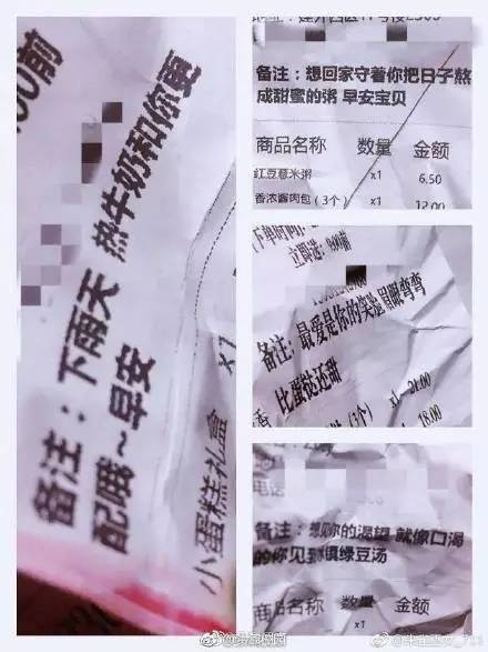 这些见证跨国恋的留言外卖单不仅是二人爱情的见证,更是一份凌晨说早安的独特情书。