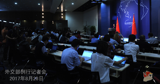 原标题: 2017年8月28日外交部发言人华春莹主持例行记者会