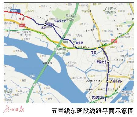五号线东延段(文冲-黄埔客运港)全长9.76公里,全部为地下线。