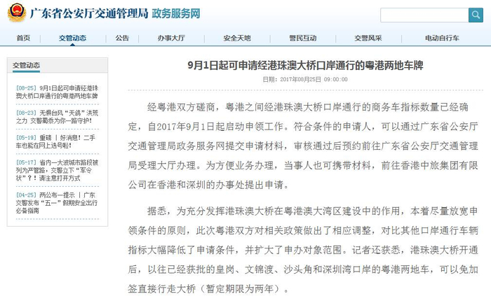 【便利】9月1日起申请粤港两地车牌,就能走港珠澳大桥啦!