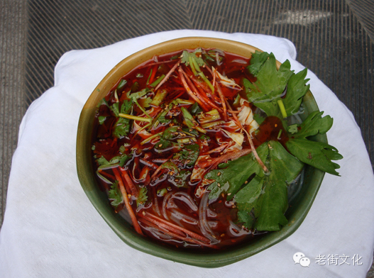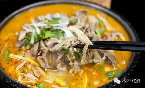 羊杂碎也是榆林人喜欢的传统小吃之一,将羊杂碎与各种调料、配菜混合共烩,再倒一层油炸辣椒,味道香辣可口。