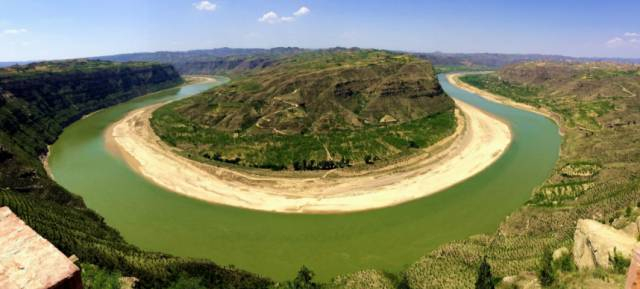 从壶口瀑布继续往北走就进了山,进山140公里左右,就到了乾坤湾。黄河流经延川县秦晋峡谷时,一改怒吼咆哮的形象,蜿蜒曲折形成了五个S型大弯道,堪称地质奇观。