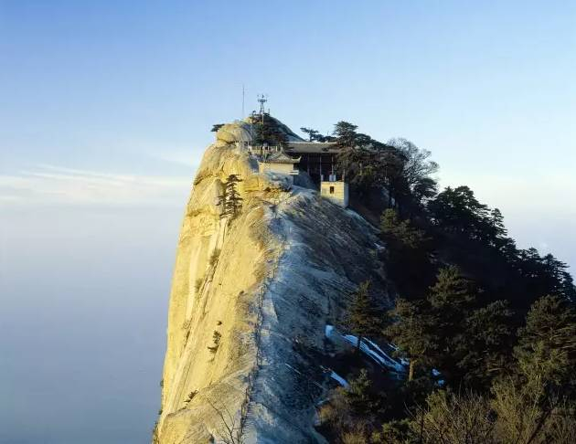 走连霍高速到华阴收费站下高速后,距离沿黄观光路终点莲花座大雕塑最近的景点就是西岳华山。