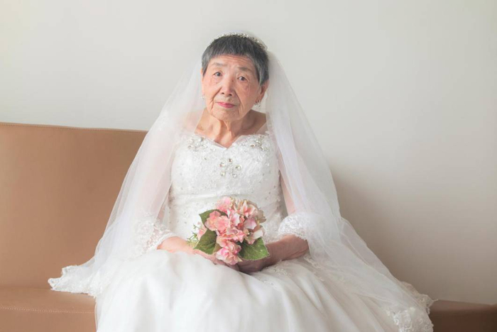 婚纱照上的主人公是97岁的胡承宽与98岁的王淑仪。2016年,王婆婆在家因不慎摔倒,瘫痪在床,生活不能自理。自被送进成都市慢性病医院接受治疗起,胡爷爷便无微不至地照顾老伴,最后还直接把“家”搬到了医院。