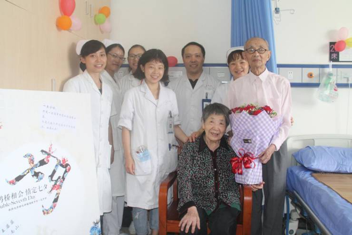今天是七夕节,两位老人在病房里度过了一个特别的“情人节”,他们“执子之手,与子偕老”跨世纪的爱情,美满、甜蜜而幸福,让人动容……