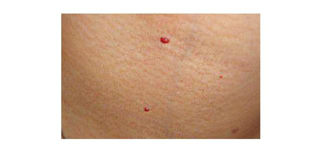血管痣大多高出皮面,是由于皮肤表面毛细血管或小动脉增生和持续扩张而造成的。按压后会退色,易破裂出血。能出现在人体皮肤表面的任何部位。